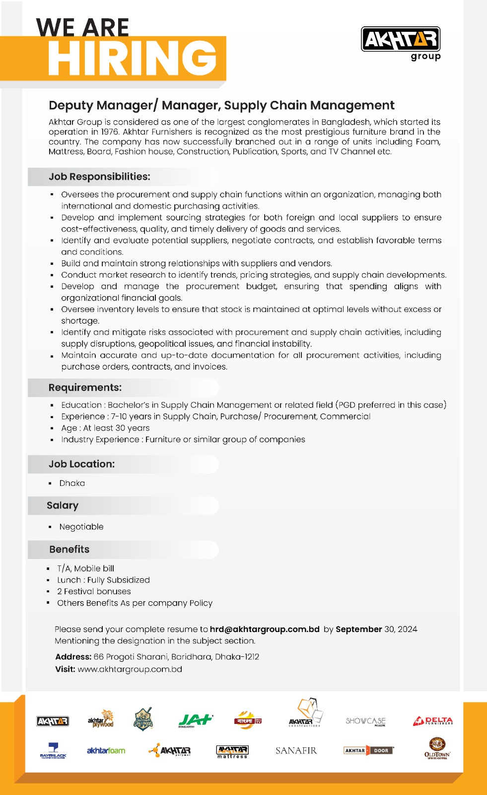 Akhtar Group is considered as one of the largest conglomerates in Bangladesh, which started its operation in 1976. Akhtar Furnishers is recognized as the most prestigious furniture brand in the country. The company has now successfully branched out in a range of units including Foam, Mattress, Board Fashion house, Construction, Publication, Sports, and TV Channel etc.